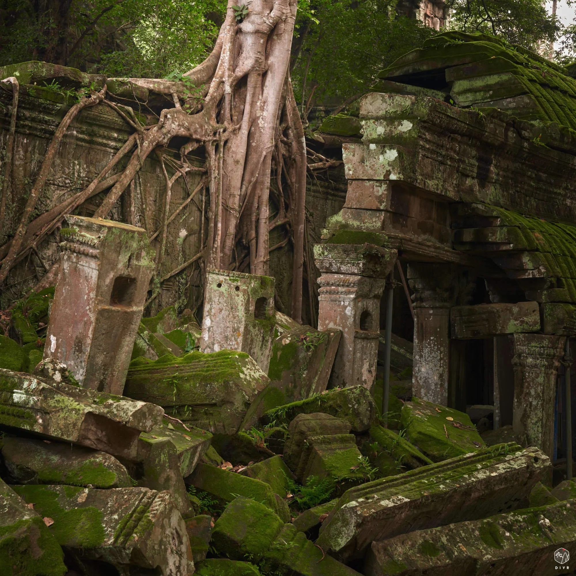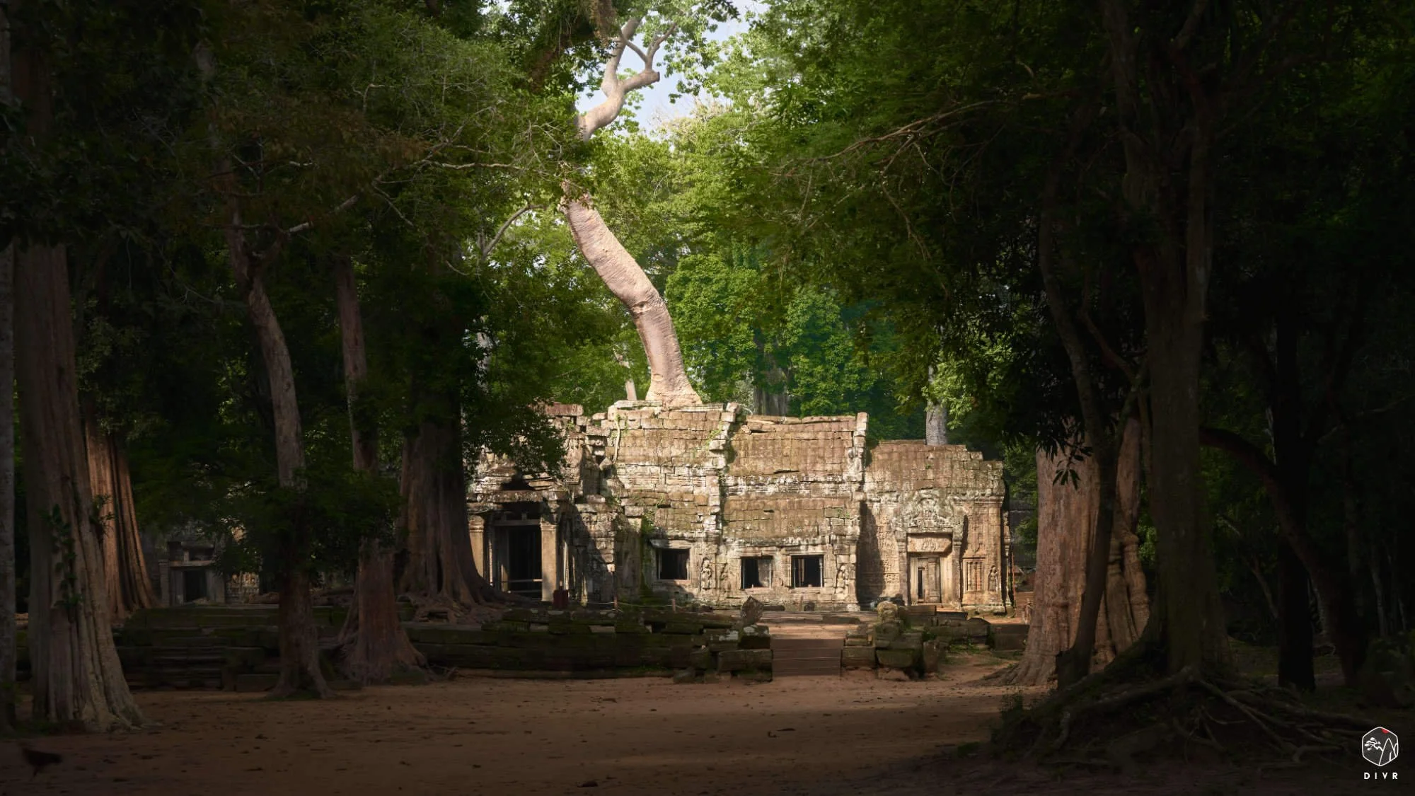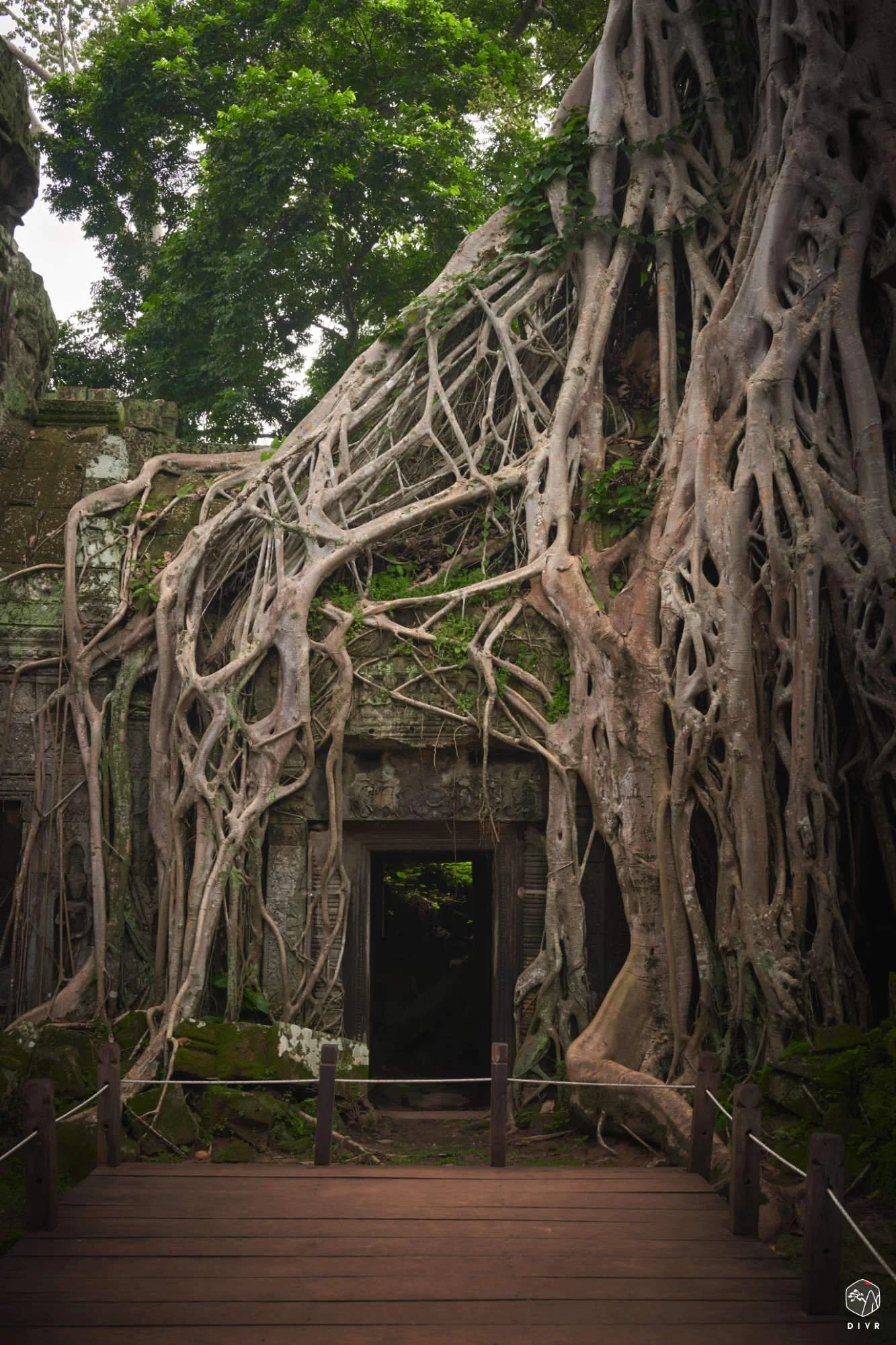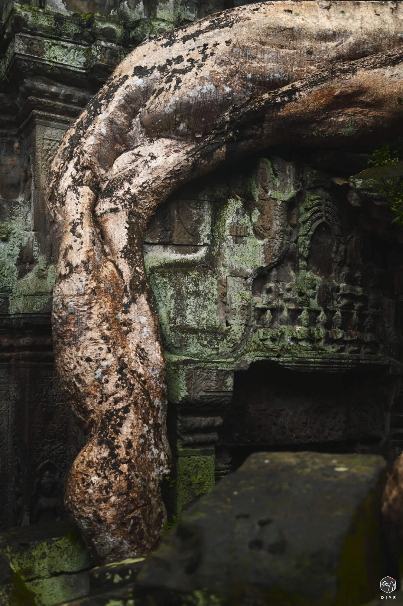 When I had the space to myself, I began focusing on details. One of the iconic viewpoints at Ta Prohm is this massive tree growing along a corridor in the temple, with its roots resembling huge snakes. I chose to zoom in to create compositions that highlighted the interaction between the tree, the stone, and the surrounding vegetation.