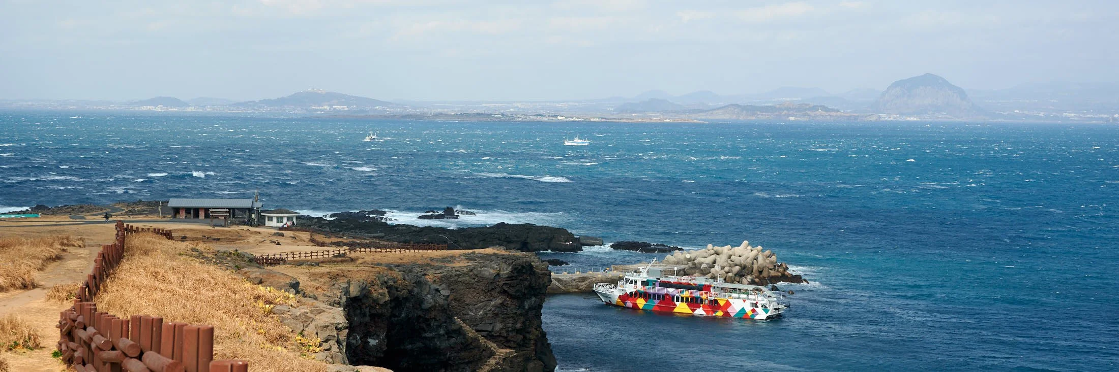At the southernmost point of South Korea (on the tiny island of 마라도 - Marado) I discovered this big tide pool with a smooth round boulder in it. It made for a great foreground interest while, in the background, you can see the last land before the infinite ocean.