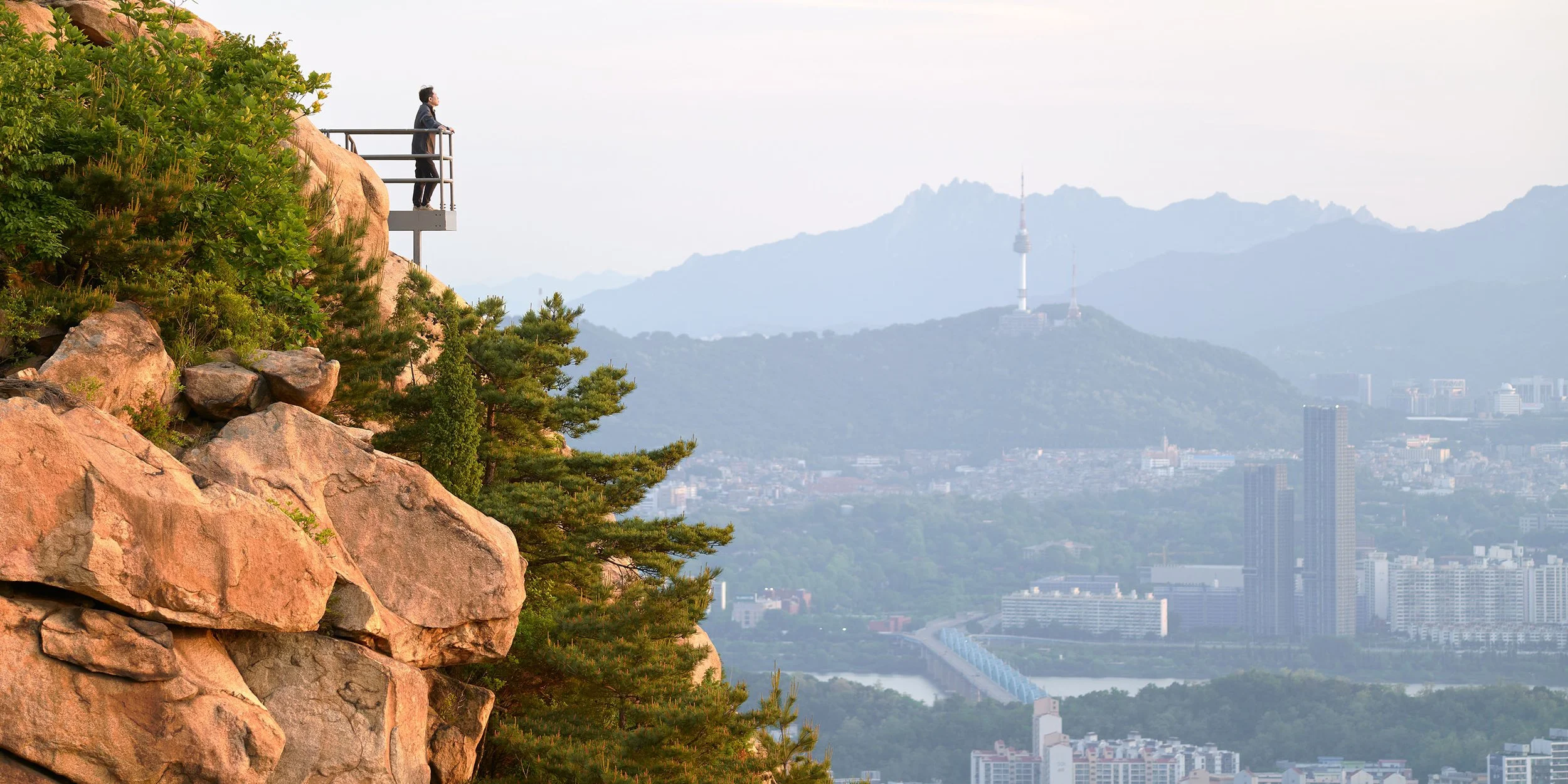 Randonnons sur la crête vers le sommet de Gwanaksan pour un voyage le long d’une vue grandiose.